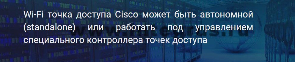 WiFi точка доступа Cisco может быть автономной (standalone) или работать под управлением специального контроллера точек доступа. Отличие этих двух видов точек только программная прошивка и, для многих моделей, возможна перепрошивка с одного варианта работы на другой на случай, если архитектура сети изменится и понадобится другая настройка Wi-Fi Cisco.