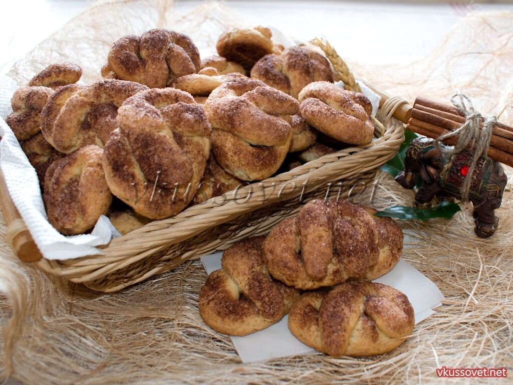 Рецепт приготовления песочного печенья с корицей. Печенье можно свернуть каральками, кренделями или в виде узелка. Обсыпается печенье сахаром с корицей и выпекается в духовом шкафу. Подавать такое печенье можно с какао, молоком или чаем. Необходимые ингредиенты: - 180 – 200 г. размягченного сливочного масла (хорошего маргарина); - 3/4 стакана сахара – песка; - 2 больших яйца; - 1/2 ч. ложки соды; - 3 стакана муки. Для обсыпки: - 1 ст. ложки молотой корицы; - 2 ст. ложки сахара – песка. Как приготовить песочное печенье с корицей Вы можете посмотреть на сайте.