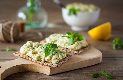 Яйца отварить вкрутую и очистить, у сельди снять кожу и удалить кости, лук очистить, яблоко очистить и удалить сердцевину, масло и хлеб порезать небольшими кусочками.