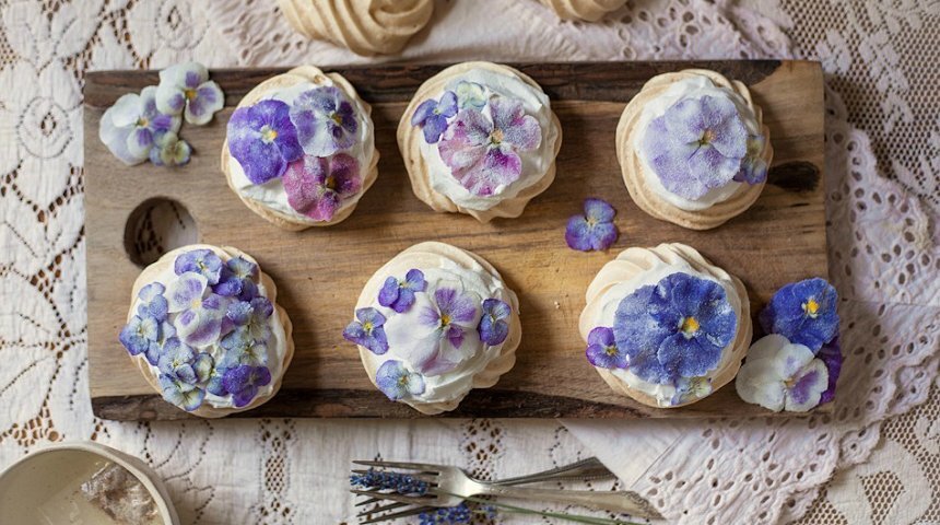 Засахаренные цветы – это великолепное и очень необычное украшение для праздничного торта, кексов, пирожных, коктейлей. Они не только красивые на вид, но и довольно вкусные. И сделать их в домашних условиях очень просто, используя обычные ингредиенты. Идея украшать десерты засахаренными цветами не нова. Такой вариант декора был популярен еще в начале 18 века. Сегодня, с появлением многочисленных частных кондитерских и маленьких пекарен, интерес к необычному украшению возрождается с новой силой. Для засахаривания подойдут практически любые съедобные цветы, а их немало: пион, тюльпан, календула, гвоздика, хризантема, ромашка, гардения, гладиолус, гибискус, мальва, жимолость, жасмин, лаванда, вербена лимонная, сирень, ноготки, настурция, анютины глазки, примулы, львиный зев, фиалка, цветки фруктовых деревьев. Цветки можно засахаривать как целиком, так и отдельными лепестками. Для засахаривания подходят также листья. Выбирайте только те цветы, которые хорошо вам известны, и если вы точно у