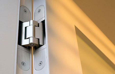 В следствии того, что врезные петли меняют вид двери и зачастую не совпадают с общим интерьером, их установка считается не целесообразной в декоративном отношении. Более удобным в этом плане предполагается монтаж скрытых петлей. Механизм такой конструкции в закрытом положении, визуально не виден снаружи. Суть этого механизма заключается в том, что монтаж его производится на фронтальной части дверного полотна. Конструктивные элементы состоят из трех осей: центральной, неподвижной и перемещающейся.