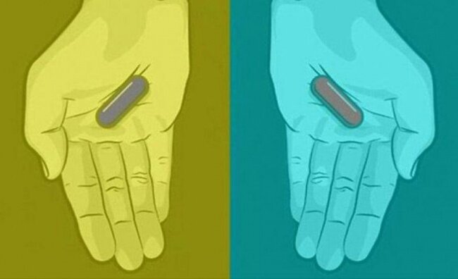 Совсем недавно утихли страсти по поводу сине-черного или бело-золотого платья, а также девочки под водой или над водой, как Интернет всколыхнула новая загадка. Кто-то утверждает, что пилюли разноцветные, одна — красная, другая — синяя. Кто-то видит две серые пилюли. А какие пилюли видите вы? Большинство людей считают, что они серие. Если быть точным — 63 %, а вторая часть, 37 %, с пеной у рта твердит, что в ладонях синяя и красная пилюли. “Таблетки — красная и синяя. Спорим?” “Все видят здесь красную и синюю пилюлю. Но они серые”. На самом деле две пилюли серые. Майкл Абраш (Michael Abrash), программист и технический писатель, впервые опубликовал это изображение в Интернете в 2014 году. Он сообщил, что “человеческий глаз не видит ультрафиолетовое или инфракрасное излучение, а также имеет слепое пятно, которое ограничивает восприятие”. Мозг компенсирует нехватку данных на основе остальной информации. Пилюли на картинке, по словам учёного, одинакового серого цвета, но мозг заставля