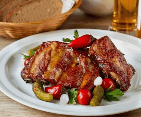 - Отправить в разогретую до 400F градусов духовку и запекать до готовности, около 60-80 минут. В процессе несколько раз вынуть и смазать маринадом.