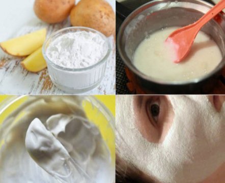 Для приготовления этого домашнего средства на основе картофельного крахмала необходимо смешать в чистой стеклянной ёмкости одну чайную ложечку крахмала, столько же тёплого свежего молока и одну чайную ложечку любого качественного растительного масла (вместо этого продукта можно использовать растопленное мягкое сливочное масло). Тщательно перемешанную до однородного пастообразного состояния массу следует нанести ровным слоем на очищенную и распаренную кожу лица, после чего накрыть её обрывками бума