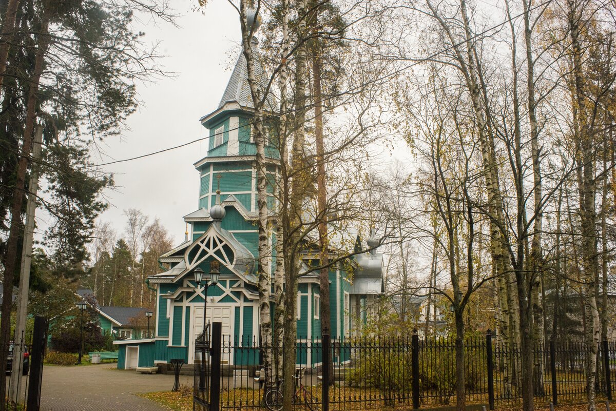 Сто лет для деревянной церкви — не срок. По крайней мере по петербургским меркам. Храм святого равноапостольного великого князя Владимира в поселке Лисий Нос как раз отметил сто лет со дня освящения. Примечательно, что в этом же году практически завершился ее масштабный ремонт, результаты которого сделали ее стилистическое решение более ярко выраженным. Церковь построили в 1913 — 1917 году под руководством архитектора Павла Мульханова, автора почти сотни зданий, расположенных в центре города на и Петроградской стороне. Инициатором строительства были купец А.И Нефёдов и бригадир плотников Ф.П. Воробьев, создавшие в 1908 году на станции Раздельная общество по ее постройке. Земля отведенная под строительство принадлежала Бельгийскому акционерному обществу. - Мульханов строил дома в стиле северного модерна. Этот храм построен как раз в таком стиле, - рассказывает настоятель Князь-Владимирского храма протоиерей Дмитрий Дашевский. - По моим ощущениям, у него очень хорошие пропорции для аку