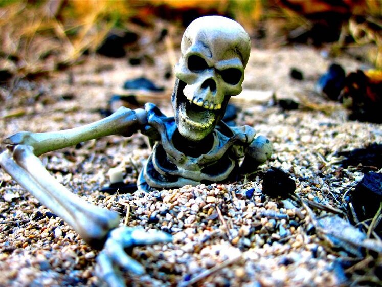 Ночь, кладбище. Мертвец вылезает из могилы и начинает вращать в разные стороны могильный крест.