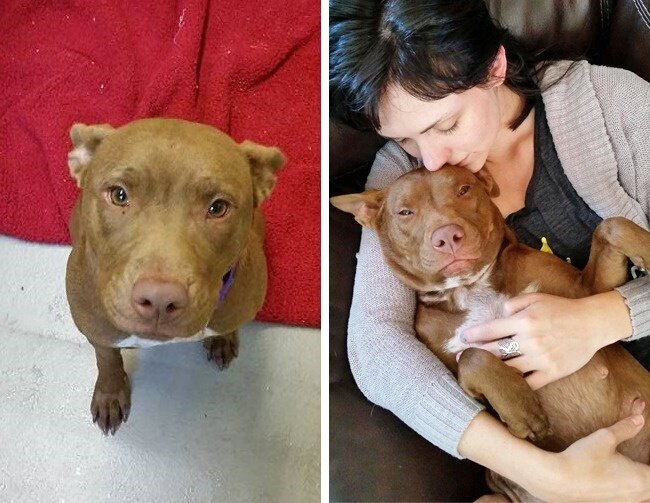 Видимо, этот питбуль пострадал от рук человека. Пса спасли люди, ставшие ему новой семьей и теперь его просто не узнать.