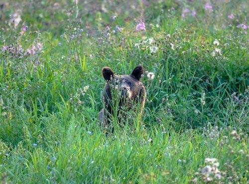 Излюбленные места кормежки медведя поля, засеянные овсом. Эти места и используются охотниками для охоты на зверя. Охота проводится в конце августа или начале сентября, когда овес достигает полной спелости. Приход медведя на овес не может остаться охотником незамеченным. Медведь обсасывает метелки растений, оставляя на поле характерные следы в виде примятого овса и кучек помета, по закрайкам между полем и лесом хорошо просматриваются звериные тропы. Овес, потравленный медведем, отличается от потрав скота. Домашние животные срывают метелки овса целиком, а медведи обсасывают одни зерна, оставляя метелки на стеблях растения. Фекалии медведя также отличаются от помета скота. В первые дни посещения медведем овса они содержат ягоды (черемуху, бруснику, чернику, малину, рябину), а в малоягодные годы — травяную массу. Приходит медведь на поле тропами, и эти примятые дорожки к полю тоже заметны. Для охоты на медведя на местах кормежки (если рядом есть деревья) или на тропах подхода зверя