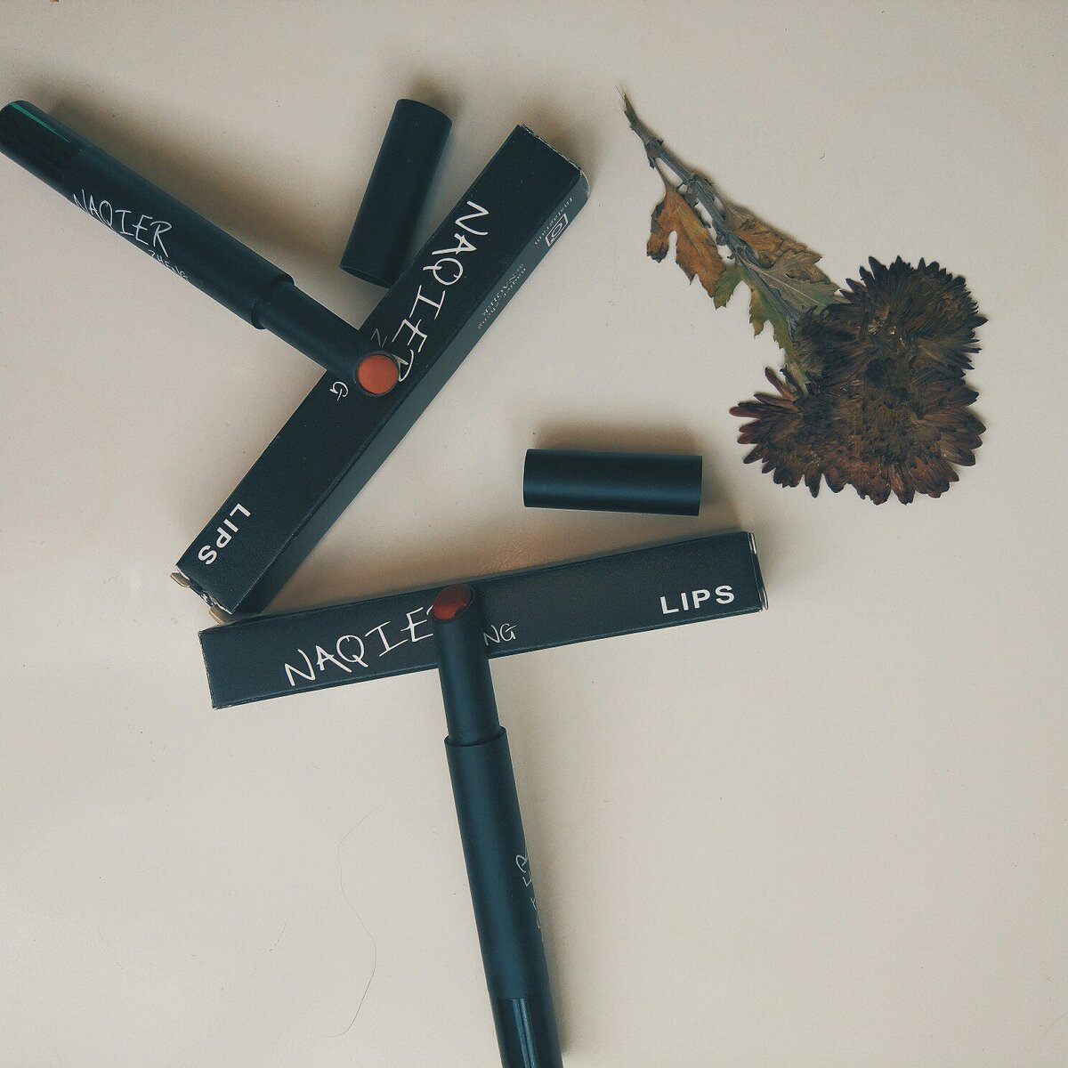 Меня покорила матовая помада-карандаш Naqier. Я взяла два оттенка - 01 и 04, более впечатлил глубокий красный оттенок - он не ярко алый, а приглушенный на губах смотрится по-осеннему стильно. Второй оттенок, который я приобрела, 04 подошел мне меньше, слишком он персиково-теплый, хотелось больше нюда (в следующий раз попробую оттенок 07). Но в любом случае обе помады по качеству отличные. Всего представлено 8 оттенков. Цена - 130 рублей. ТОП-5 преимуществ Минусы Не без минусов, помаду-карандаш нужно открывать аккуратно, может случайно отломиться. Ну и объем помады не на год, при ежедневном пользовании месяца на 3 где-то хватит, ну за такую стоимость, по-моему, ничего в этом страшного нет. Доставка Быстро доставили, недели за 2. Обычно мне помады не доходят, а тут пришли целые, хорошо упакованные, да и ещё и быстро. Официальный продавец-производитель Naqieryy Store - ссылка на помады.