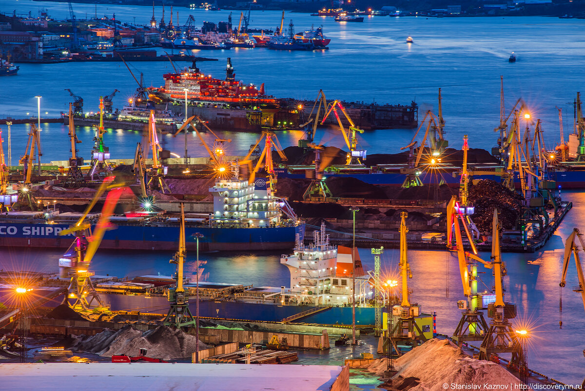 В эту поездку я наконец то добрался до видовой точки на грузовой порт имея в своем арсенале 80-200\2.8. За год порт успели лаконично подсветить, краники стали как игрушечные цветные жирафчики переливающиеся разными цветами. Очень здорово! все это живет, шумит, местами грохочет, но очень атмосферно! Очередной фототур "В погоне за северным сиянием" у нас пройдет 28 января - 2 февраля 2018 года. Подробности: http://discoverynn.ru/tour/северное-сияние-2/ Присоединяйтесь!