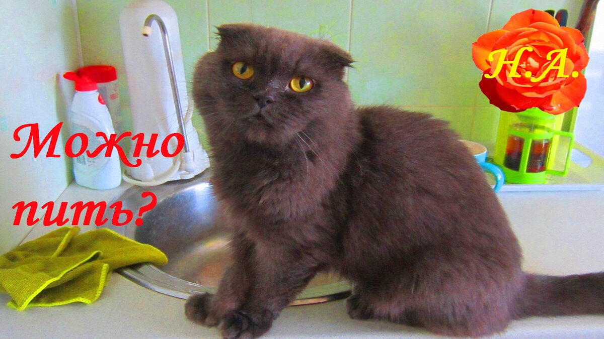 Котик любит пить воду только из крана. Но всегда долго не решается.