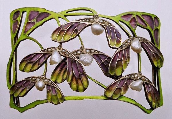 Специфическое украшение «прекрасной эпохи» — планшетки для чокеров в стиле арт-нуво, рубеж XIX — XX веков. Сквозь планшетку прот