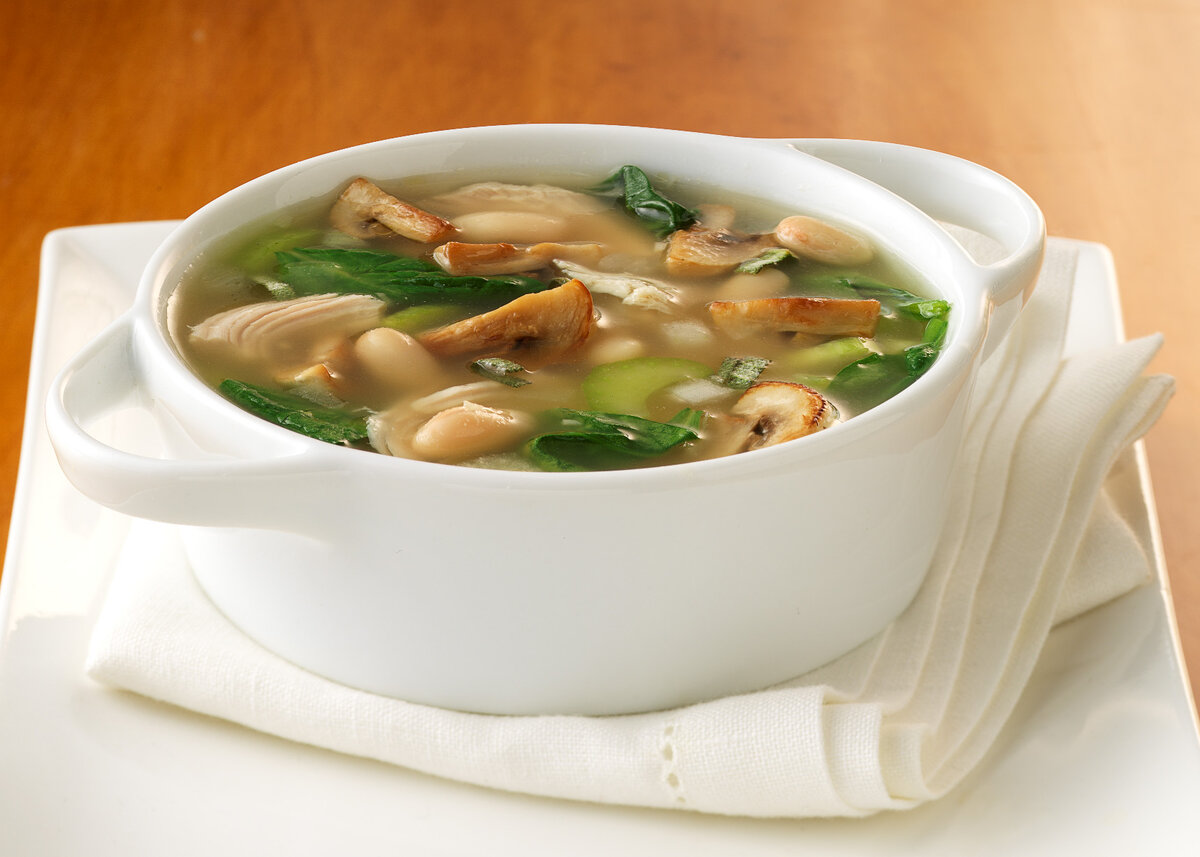 Очень вкусное и сытное блюдо, которое идеально подойдёт для обеда. Ингредиенты: Грибы белые сушёные 52 грамма или свежие 530 грамм Морковь 100 грамм Лук репчатый 100 грамм Петрушка (корень) 26 грамм Масло растительное 40 грамм Соль, перец по вкусу Зелень по вкусу Для лапши: Мука пшеничная 140 грамм Яйцо куриное 1 шт. Вода 30 грамм Соль 3 грамма Приготовление: Перебрать сушёные грибы, промыть и залить холодной водой на 3 часа. По истечению времени ещё раз промыть грибы. Воду, в которой замачивались грибы процедить, и варить в ней грибы до готовности. Если грибы свежие, то бульон готовят без замачивания. Готовый бульон процедить. Грибы нарезать соломкой. Для лапши: горкой просеять муку. Сделать углубление в центре и, постепенно вливать смесь воды с яйцом и солью. Затем замесить тесто. Дать тесту 30 минут отдохнуть, затем раскатать в пласты. Нарезать полосками и нашинковать в виде лапши. Лапшу подсушить на доске (предварительно доску посыпать мукой). Нарезать тонкой соломкой репчатый