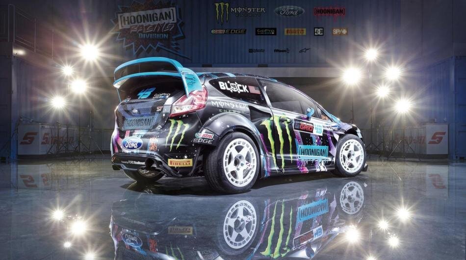 Это довольно странная коллекция... но не забывайте, с кем мы имеем дело 1. Ford Fiesta ST RX43 Главная звезда шестой «Джимханы», эта 600-сильная «Фиеста» была построена для Мирового чемпионата по ралли-кроссу 2013 года. Делает сотню меньше, чем за 2 с и может дать угла вокруг огромного шара, покрытого шипами. 2. Ford Focus RS RX Новая игрушка Кена, которую мы видели скользящей по краешку дока в девятой «Джимхане», — еще одна ралли-кроссовая тачка. Двигатель у нее меньше, чем у дорожного RS (2 литра против 2,3), но сил почти в два раза больше — их тут 600. Дрифт-режим включен принудительно. 3. Ford Mustang Hoonicorn RTR Вы могли видеть его в компании Мэтта ЛеБлана во время обзорной экскурсии по Лондону или нарезающим пончики вокруг лоурайдера в седьмой «Джимхане». Да что мы рассказываем — разве можно забыть дропнутый и раздутый до 855-сил Mustang с безумцем за рулем? 4. Ford Escort MkII RS Сначала это был обычный Escort MkII RS 1978 года, потом асфальтовый ралли-кар, а теперь — дик
