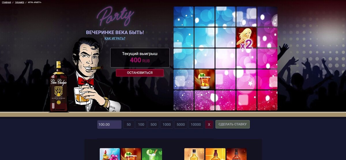 Продолжаем знакомить вас с играми из раздела 1xGames. На очереди — развлечения. Решайте, сколько ставить и во что играть. А взамен получайте много удовольствия, положительных эмоций и заряд адреналина. «Party» Лето — самое время для зажигательных вечеринок. В игре «Party» вас ждут сексапильные девушки, кубинские сигары и алкоголь рекой. Но это в том случае, если жена не вернется. Делайте ставку и открывайте ячейки. Вдруг повезет. «Русская рулетка» Хотите пощекотать нервишки? Тогда вам сюда. Выбирайте патрон, крутите барабан и жмите на курок. Беременным женщинам, несовершеннолетним и гражданам с ранимой психикой играть запрещено. «Рулетка» Говорят, создатели рулетки продали свои души дьяволу, чтобы узнать секрет этой игры. Если хотите сыграть в рулетку, не обязательно идти в казино. Сделайте ставку, перетащите фишку на нужную ячейку и крутите колесо. Угадайте, где остановится шарик, и деньги ваши. Повезет или нет? «Камень, ножницы, бумага» Помните эту старую, но веселую игру? Мы