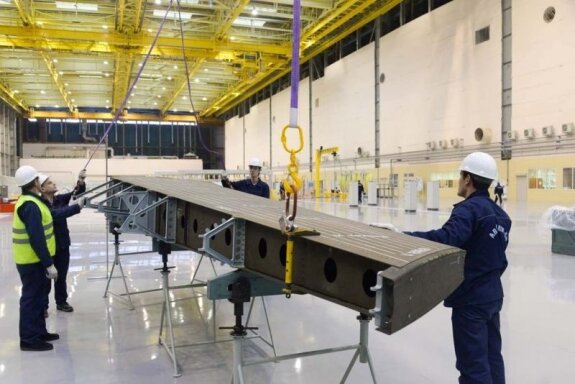 Ростех начинает серийное производство крупногабаритных углепластиковых деталей кессонов киля и стабилизатора для самолета МС-21.