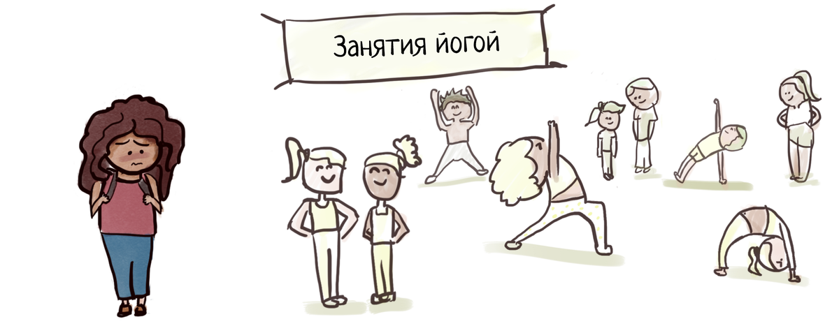 Вы приходите на свое первое занятие по йоге. Вас немного тревожат лишние килограммы и тот факт, что обтягивающая форма выдает все недостатки вашей фигуры. Вам страшно выставить себя на посмешище.