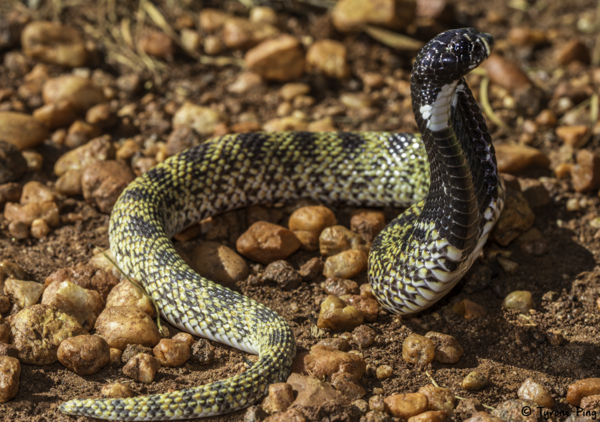 Щитоносая змея (Aspidelaps scutatus scutatus) или щитоносая кобра – ядовитая змея из семейства аспидовых, обитающая в Южной Африке. Эта рептилия встречается в Ботсване, Мозамбике, Намибии, Зимбабве и Южной Африке. Это змея обладает коротким (максимально до 74 сантиметров), но очень толстым, плотным телом и короткой широкой головой. Окрас щитоносой змеи может варьироваться от серо-коричневого до красновато-коричневого. Шея и голова преимущественно чёрные. Окрас брюха обычно светлый или желтоватый. Щитоносая змея обитает в саваннах и ведёт ночной образ жизни. Днём змея скрывается от солнца в норах грызунов, под широкими камнями и поваленными беревьями. Короткая, мощная морда и увеличенные чешуйки на носу позволяют змее рыть проходы в песчанной почве. Рацион питания у рептилии достаточно разнообразный. Щитоносая змея охотится на мелких млекопитающих, амфибий, ящериц и мелких змей. Тем не менее, она сама может стать добычей для других змей. Это достаточно вялая змея, однако почувствовав оп