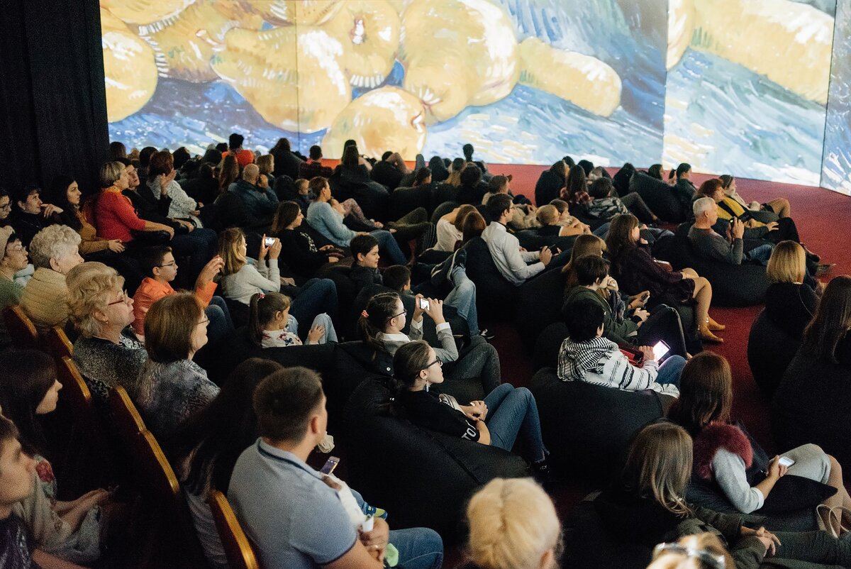 В этом году ростовчанам впервые был представлен новый формат восприятия искусства – мультимедийные проекты по мотивам картин известных художников. Горожанам интересно В мае в рамках выставки «Арт-Ростов» горожане увидели «Ожившие полотна» Айвазовского, в октябре – Ван Гога. Весной все мероприятия «Арт-Ростова» посетили порядка 30 тысяч человек. Многие писали в анкетах, что хотели бы посмотреть в мультимедийном варианте произведения других художников. Экспозиция «Ван Гог – Ожившие полотна» была организована иначе, чем весенняя, сама по себе. Сюда пришло 12 тысяч человек. И хотя представление шло беспрерывно, иногда перед входом выстраивалась очередь, потому что мест не хватало. Во втором случае площадь зала была вдвое больше – почти 800 квадратных метров. Вместимость – 300 человек, вместо прежних 150. Количество показанных картин также выросло с 200 – Айвазовского до 300 – Ван Гога. Длительность мультимедийного сеанса в обоих случаях была одинаковой, получасовой. Персонажи дви