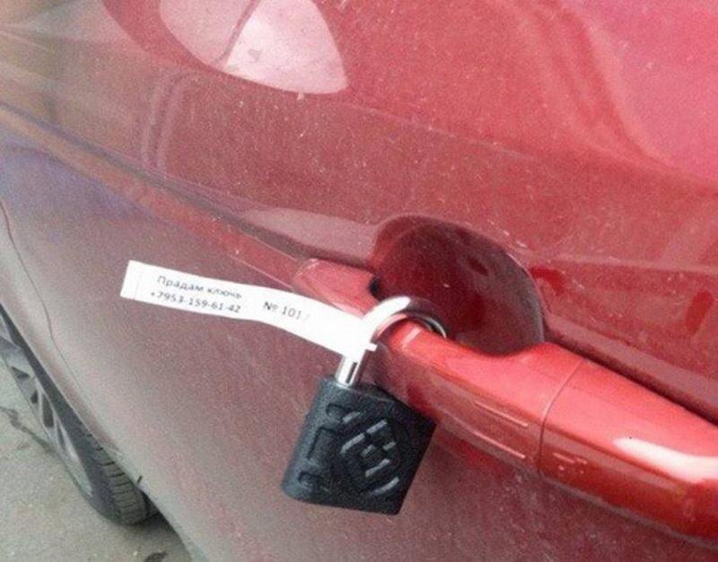 Только не вздумайте переводить деньги вымогателям, рискуя в следующий раз покупать ключи для четырех замков. Это самый дешевый китайский замок из хозмага за 200 рублей без каленой дужки и легко перекусывается болторезом.