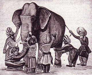 Широко известна индийская басня про слепых мудрецов и слона "Учёный спор". Мудрецы ощупывают разные части слона и рассуждают, что есть слон - колонна (нога слона) или змея (хобот слона) или еще что-то?