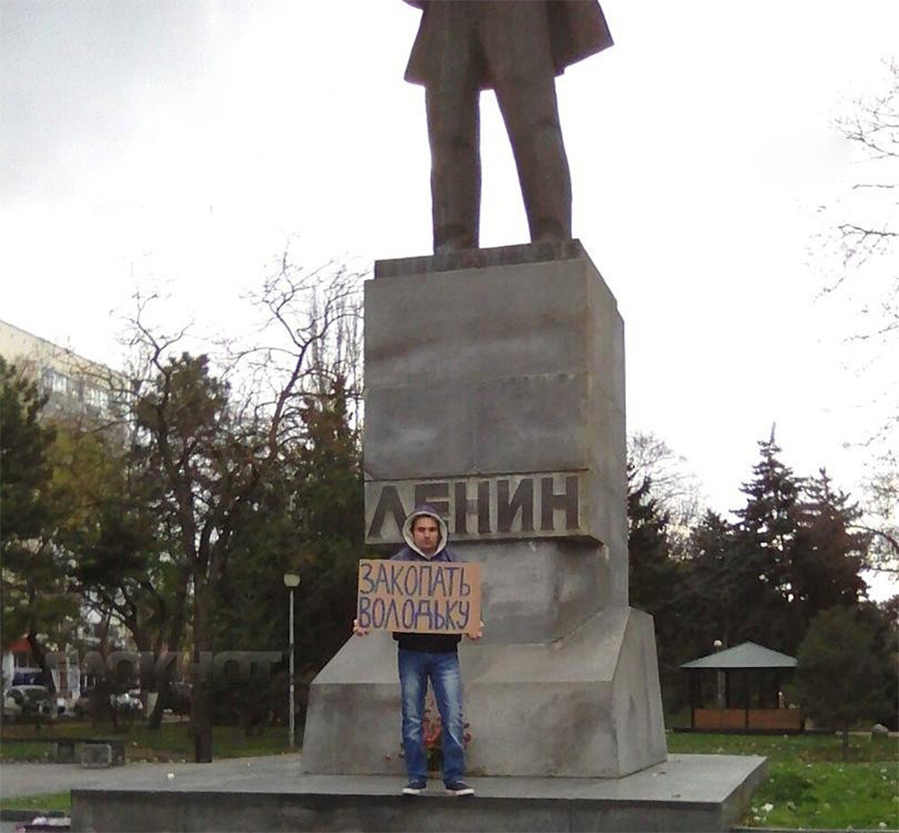 Молодой человек провёл в Анапе у памятника Ленину одиночный пикет с требованием «Закопать Володьку». Как пишет портал Блокнот Анапы, таким образом он выразил поддержку идеи захоронения Ленина.