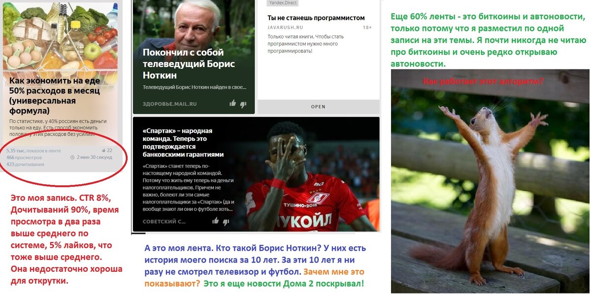 Начиная публиковаться в Дзене, многие авторы сталкиваются с удивительными вещами: в ленте висит инормационный мусор, а то, что они сами считают интересным, и пишут для людей, просто не взлетает. Вот пример из моей ленты. Особенно поражает, что абсолютно не интересные читателю новости лепит не кто-нибудь, а Яндекс, у которого есть много лет истории нашего поиска и должно быть понимание наших интересов. Что же делать, если вам упорно показывают Дом 2 и прочий шлак? Пользуйтесь кнопкой "палец вниз", но делайте это правильно! Например, я люблю почитать РБК, но мне абсолютно не интересен материал про Боинг. Надо нажать дизлайк. А вот дальше интересно. Система предлагает мне заблокировать новости от РБК навсегда. Но я-то РБК читаю! Пользуйтесь красной кнопкой только тогда, когда вы уверены, что на источнике не будет больше ничего интересного. Например, я могу смело блокировать Cosmo. Чем больше дизлайков вы поставите, тем быстрее ваша персональная лента наполнится интересными вам лично ново