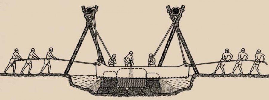 На картинках ниже можно увидеть весьма простые механические устройства для разпиливания каменных блоков. Но, оказывается, существовали более грандиозные устройства. Но, будем соблюдать последовательность.