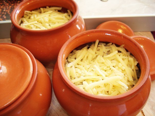 6. Накрытые крышкой горшочки ставим в холодный духовой шкаф (духовку предварительно не разогреваем). Готовить 20 минут при температуре 180 С.Надеюсь Вам понравится рецепт мясо в горшочках с картофелем и сыром.