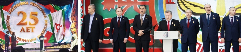 В сентябре в Государственном Кремлевском дворце состоялся грандиозный праздник по случаю 25-летия Ингушетии и Карачаево-Черкесии. В нем приняли участие высокие гости: председатель Совета Федерации Валентина Матвиенко, первый заместитель руководителя администрации президента РФ Сергей Кириенко, вице-премьер Правительства РФ Ольга Голодец, министр по делам Северного Кавказа Лев Кузнецов.