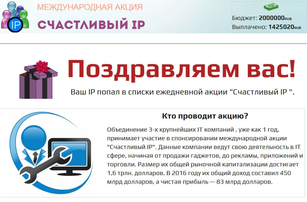 - Организаторы акции – нет никакой информации о том, кем проводится мероприятие под названием Международная Акция Счастливый IP.