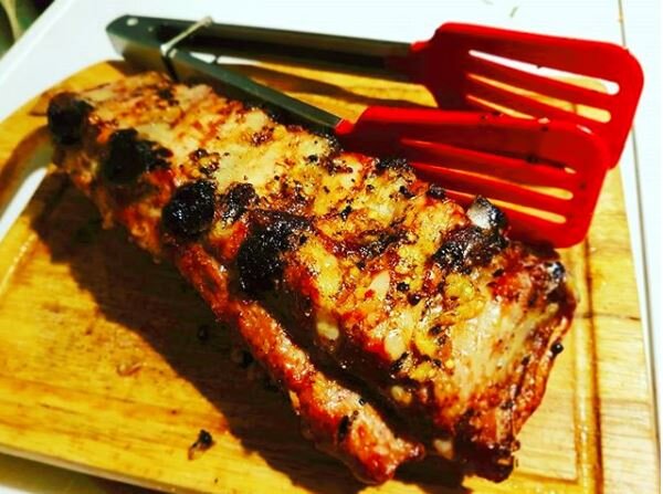 🔸подготовить масло: в 100 мл оливкового масла добавляем пресованный чеснок (5-6 зубчика), сушеную приправу "аджика", тимьян или другие свои любимы специи 🔸промокаем салфетками рёбраи отправляем на решётку в духовку на 230° на 15-20 минут 🔸достаем рёбра и поливаем их соевым соусом с одной стороны, отправляем в духовку на 170°, через 15 минут достаём и поливаем с другой стороны и ещёна 15 минут в духовку 🔸достаём рёбра и смазываем с одной стороны маслом со специями и отправляем в духовку, через 10 минут смазываем маслом с другой стороны 🔸доводим до готовности 🔸ароматные свиные рёбра готовы 😃😃😃
