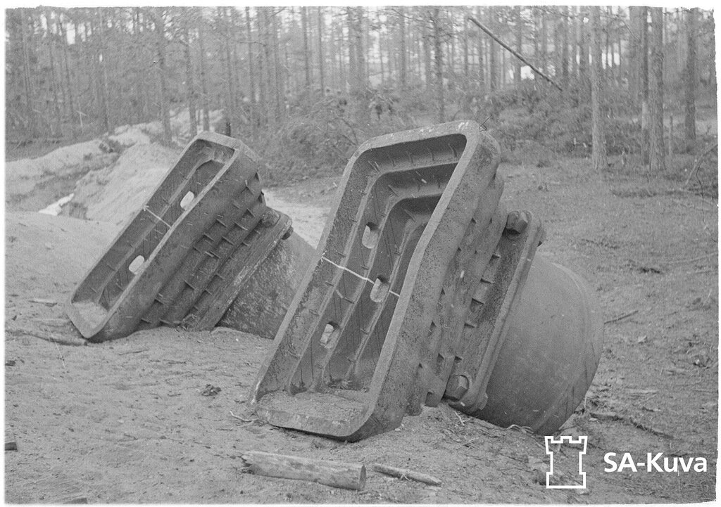 На финских архивных фотографиях попадаются виды как на советские недостроенные ДФС в приграничных УРах, так и на неустановленное в них вооружения. Особенно привлекают внимание короба 76-мм артиллерийской установки Л-17, орудийно-пулеметной установки ДОТ-4 и пулеметной установки НПС-3. Все это хозяйство в большом количестве досталось финнам в июне 1941 года и было использовано по назначению уже в финских ДФС. На заглавном фото мы видим подготовленные к установке в АПК два короба от Л-17. Вероятно, фото сделано непосредственно рядом со строящимся АПК, а не на месте складирования. На заднем плане что-то похожее на ров. Дренажный или противотанковый не понятно. На фото четко видно три короба Л-17, что несколько многовато. А капониры в Выборгском и Видилицком УРе вряд ли планировались к постройке. На одном из коробов четко виден его номер. думаю что по документам можно четко определить в какое сооружение его планировали установить или как минимум куда он был отгружен с завода. А еще можн