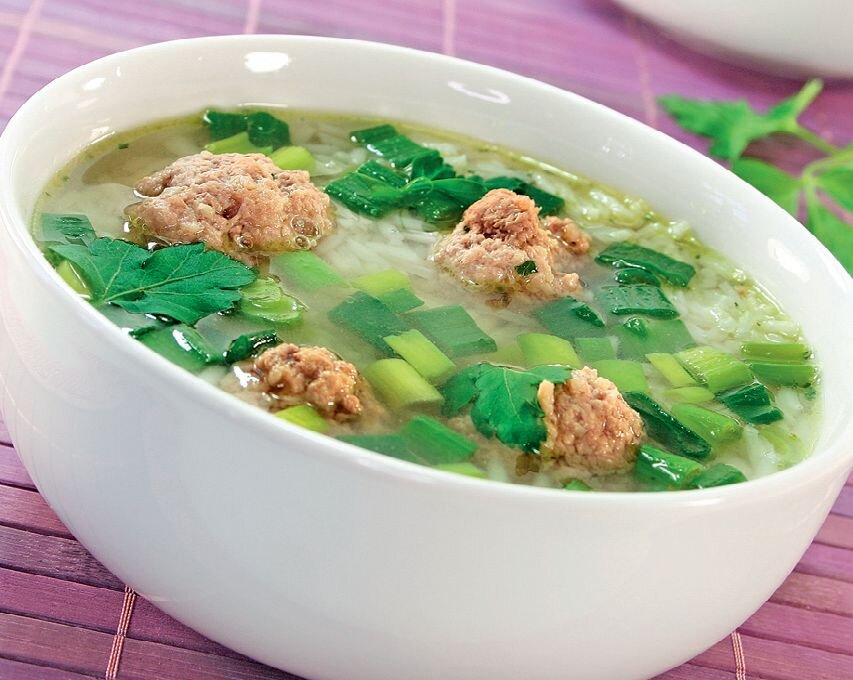 Очень вкусное и сытное блюдо, идеально для обеда. Ингредиенты: Печень говяжья 200 грамм Лук репчатый 1 шт. Яйцо куриное 2 шт. Масло сливочное 50 грамм Сухари панировочные 6 столовых ложек Бульон мясной 1,2 литра Петрушка Майоран сушёный измельчённый (на кончике ножа) Мускатный орех измельчённый (на кончике ножа) Соль, перец по вкусу Приготовление: Вымыть говяжью печень и удалить плёнку. С помощью мясорубки измельчить говяжью печень и лук. Добавить сливочное масло, яйца и панировочные сухари. Фарш посолить, поперчить и приправить майораном и мускатным орехом. Отправить на 1 час в холодильник. Бульон вскипятить. С охлаждённого фарша сформировать фрикадельки и опустить их в бульон. Варить около 10 минут. Готовое блюдо украсить измельчённой петрушкой. Приятного аппетита.