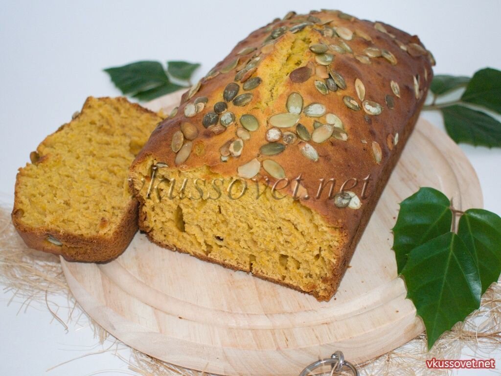Рецепт приготовления самого популярного кекса из тыквенного пюре с семечками. В этом кексе используется растительное масло вместо сливочного, поэтому кекс получается очень нежным и легким. Из предложенного количества ингредиентов кекс получается сбалансированным, средне сладким и с небольшим добавлением приправ. Такой кекс можно подавать со сливочным мороженным или взбитыми сливками. Необходимые продукты: - 100 г. растительного масла; - 400 г. муки; - щепотка корицы; - 100 г. сахара (жидкого меда); - 250 г. тыквенного пюре; - 2 яйца; - 2 ч. ложки разрыхлителя; - 1 ч. ложка ванили (по желанию); - щепотка соли; - горсть тыквенных семечек. Как приготовить кекс из тыквы Вы можете посмотреть на сайте.