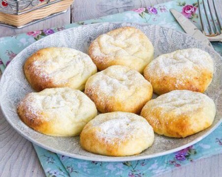 Шаг 4 Противень ставим в разогретую до 180 градусов духовку на 15-20 минут. Готовые сырники посыпаем сахарной пудрой и подаем к столу.Приятного аппетита!