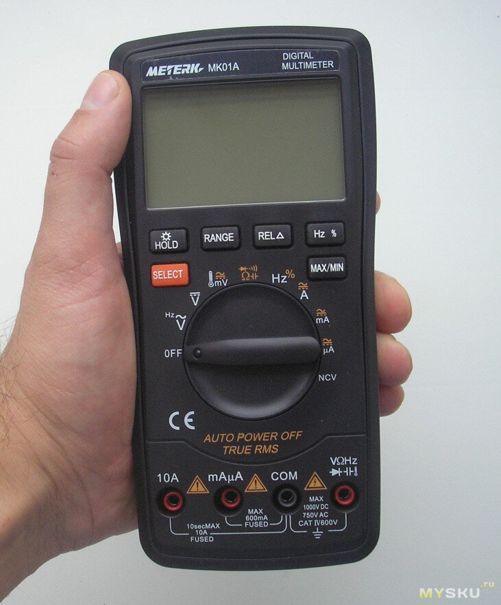 Продолжаю серию обзоров про мультиметры. Обзор для тех, кто всё ещё не определился:-) Стараюсь выбирать мультиметры, которые ещё никто не тестировал. У всех приборов есть свои нюансы. Этот мультиметр не исключение. Есть положительные, есть не очень. Обзор написан по стандартному шаблону. Боязнь упустить что-то из вида, делает его немного сухим. Поэтому приглашаю под кат не всех, только тех, кому действительно интересно. Кого устраивает такой подход, заходим. Смотрим, в каком виде присылают. Упаковали супер. Коробка универсальная. Подойдёт под любой мультиметр. Смотрю, что внутри. Всё разложено по пакетам. В комплект поставки входят: — мультиметр — щупы — термопара — батарейка 9В (внутри прибора) — инструкция. Инструкция к мультиметру на всевозможных языках (на 55 страничках, всего). Можно глянуть скан английского варианта инструкции. Возможно, кому-то пригодится. А вот и мультиметр. Размером крупный. Дисплей был без защитной плёнки. Прибор выглядит солидно. Качество изготовления
