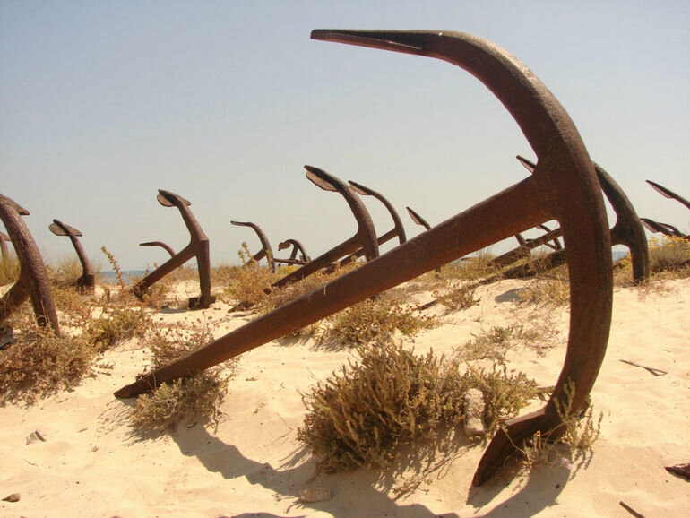 Это крайне необычное кладбище находится на песчаном побережье Португалии. Часто можно увидеть данные объекты в подборках, однако мало кто знает историю их возникновения. Все дело в том, что когда-то на острове находилось рыбацкое поселение, которое в результате неизвестных причин в 1968 году оказалось покинуто. Рыбаки также забросили и все принадлежности для ловли рыбы, морские судна и вот эти самые якоря, так красиво уложенные на берегу. С тех пор они лежат там, встречают туристов и порождают новые легенды... ! +++ Подписывайтесь на канал, чтобы не пропускать новые подборки заброшенных достопримечательностей!