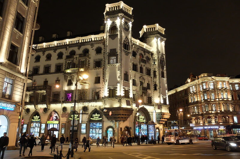 Закладная на этот дом с башнями была у деда Миронова, а теперь на 1 этаже театр имени Миронова )) Дом был продвинутый для того времни. Квартиры имели газовые плиты, утопленные в пол ванны, калориферы для сушки полотенец, встроенные шкафы; во дворе дома имелся также гараж.