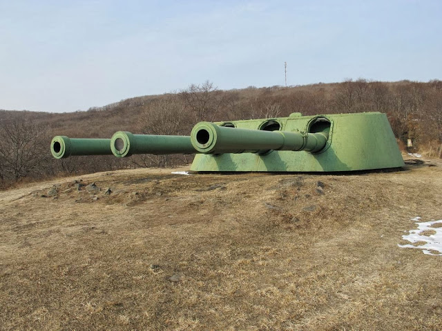 О Ворошиловской батарее на острове Русский написано много, как в Интернете, так и в специальной литературе. Нет нужды это повторять. Ограничусь лишь кратким описанием по ходу повествования и ссылкой на наиболее полную статью коллектива авторов: 305-мм/52 кал. башенная береговая артиллерийская батарея № 981... в сборнике "Крепость Россия 3" за 2008. Эту статью я всячески рекомендую прочитать заинтересовавшимся гостям моего журнала.