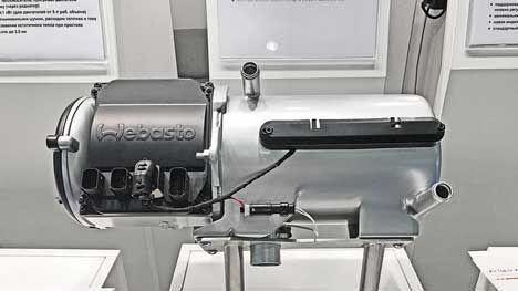 Компания "Вебасто Рус" представила новые модели предпусковых подогревателей. Среди новинок – высоковольтный электрический подогреватель жидкостного контура HVH, который работает от сети DC напряжением до 450 V. Вес подогревателя составляет 2 кг, при теплопроизводительности до 7 кВТ его объем составляет 1700 см3.