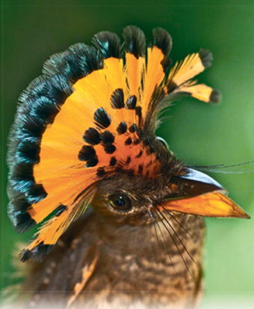«На далёкой Амазонке...» Сейчас, когда у нас с вами за окном кружат лишь «белые мухи» – снег, – на экваторе и в Южном полушарии стоит жара, а значит, мух там видимо-невидимо. Но если людям они причиняют неудобства, то маленькая птичка с короной из перьев только рада обилию насекомых. Недаром её зовут амазонский венценосный мухоед, а ещё – королевская мухоловка. Водится она в Центральной и Южной Америке, в густых лесах Бразилии, Перу, Боливии, Эквадора и Суринама. Вот ведь… не будь яркого венца на голове, птичка-то воробей воробьём! Маленькое серо-оливковое тельце, тонкий клюв, короткие лапы, хвостик средней длины. И красивый цветной хохолок, благодаря которому его обладателя не спутаешь ни с кем. Обычно птичка молчалива. Лишь изредка она издаёт короткие отрывистые звуки, которые можно передать как «си-юк» и «кир-лип». Питается венценосный мухоед мухами, стрекозами, жуками и другими насекомыми, которых немало в лесах Амазонки. Свой обед птичка добывает прямо на лету либо