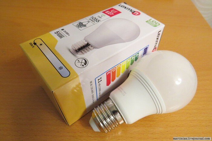 Приехал домой, вкрутил на место, где до этого стояла лампочка на 950 Лм. - не понравилось. Свет уж больно жёлтый, да и хочется чуть больше его... Зашёл на сайт "Леруа", а там... Цены радуют! Нашёл лампу на 1050 Лм - как раз чуть больше света. И цветовая температура не 2700 К, а 3000 К - как раз не будет так желтить. А главное цена - всего 118 рублей!!! Можно было бы предположить, что это некачественный продукт, но гарантия - 5 лет. Присмотрелся, взвесил все "за" и "против" и куп