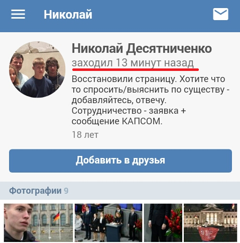 Накануне были опубликованы скриншоты со страницы Николая «ВКонтакте». На изображениях видно, что в качестве даты рождения парня указано 22 ноября 1996 года. Получается, что «школьнику» 21 год. Позже он исправил эту информацию, указав новый возраст – 18 лет.