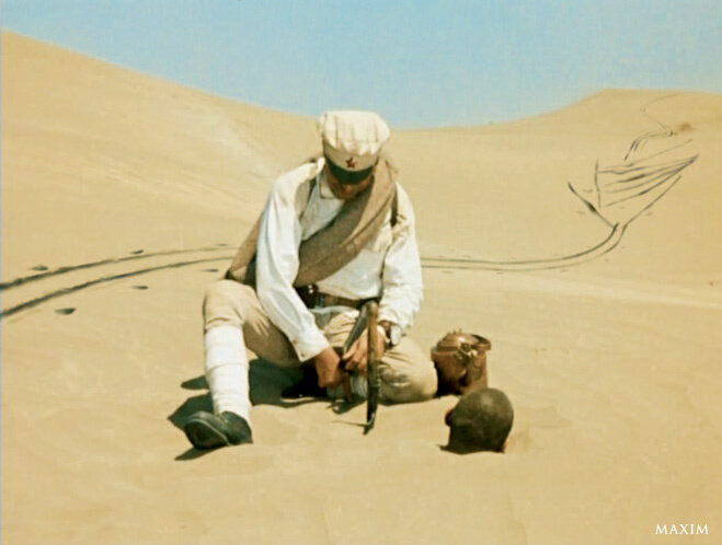 Белое солнце пустыни Советский кинематограф тоже грешил ляпами. То, что после взрыва баркаса на заднем плане виден выныривающий из воды и отплевывающийся Верещагин, ты, наверное, слышал. А вот обращал ли ты внимание на сцену встречи Сухова и Саида? Все-таки следы лыж в пустыне — редкое явление. Тебе так не кажется? Бриллиантовая рука Еще один забавный ляп советского производства. (Примечательно, что эта комедия вышла в тот же год, что и уже упомянутое «Белое солнце пустыни».) Вряд ли Леонид Гайдай сознательно поместил в сцене рыбалки Гены и Сени человека, объятого языками пламени. Горящий чудак смешно размахивает руками всего две секунды где-то на заднем плане, а затем теряет равновесие, падает и пропадает из кадра. Служебный роман Эльдар Рязанов, безусловно, режиссер выдающийся. И ляпы у него соответствующие. При скрупулезном осмотре кабинета Калугиной на мониторе ее ЭВМ можно заметить заставку Windows. А в сцене, где Новосельцев беседует с Шурой в столовой, в правом углу экрана