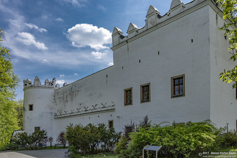Вместе с укрепленной готической церковью Св. Анны и колокольней в стиле ренессанса, усадьба образует исторический центр селения. В её современном облике можно найти следы стилей различных эпох – поздней готики, ренессансной перестройки, барочно-классических переделок. Краткая историческая выставка знакомит с историей усадьбы, и с эволюцией родов, которые принадлежали к дворцу.