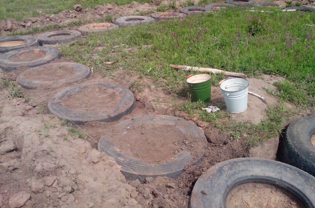 Как было не помочь брату. Праздничный и выходные дни занимался стройкой. Начали с фундамента. Ему стало жалко бетон зарывать в землю (деньги в землю зарывают только идиоты), выбрал малозаглубленный ленточный фундамент или как его сокращенно в народе называют МЗФЛ, но, чтобы увеличить площадь опоры на грунт и сэкономить на высоте ленты, уложил покрышки под внешние стены. Засыпал землей и все... оказывается есть даже патент на фундамент из покрышек, который придумал некто кузнец М