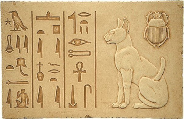 В Египте поклонение животным было частью жизни. Но кошка всегда занимала особое место. Кошкам в Египте посвящались роскошные храмы. Кошка превозносилась тысячами паломников. Кошку Мумифицировали. В городе Бени-Хасана археологи нашли кошачье кладбище. Там было похоронено 180 тысяч кошек. Мумии кошек были в золотых и серебряных усыпальницах, инкрустированных драгоценными камнями. В древнем Египте, когда кошка умирала, ее хозяин, в знак глубокого траура сбривал брови. Из горящего дома, при пожаре, первым, что выносили египтяне – кошку. За непреднамеренное убийство кошки можно было запросто расплатиться собственной жизнью! Как ночное животное, в Египте кошка была посвящена богине Луны, плодородия и деторождения по имени Бастет. Бастет была родной сестрой бога – бога солнца Ра, женщина с головой кошки. Священная кошка Египта, вскормившая Гора, отрывает голову змеи Апепи, символу зла и тьмы, то есть бесплодия, – сцена, находящая свое отражение в 17 главе так называемо