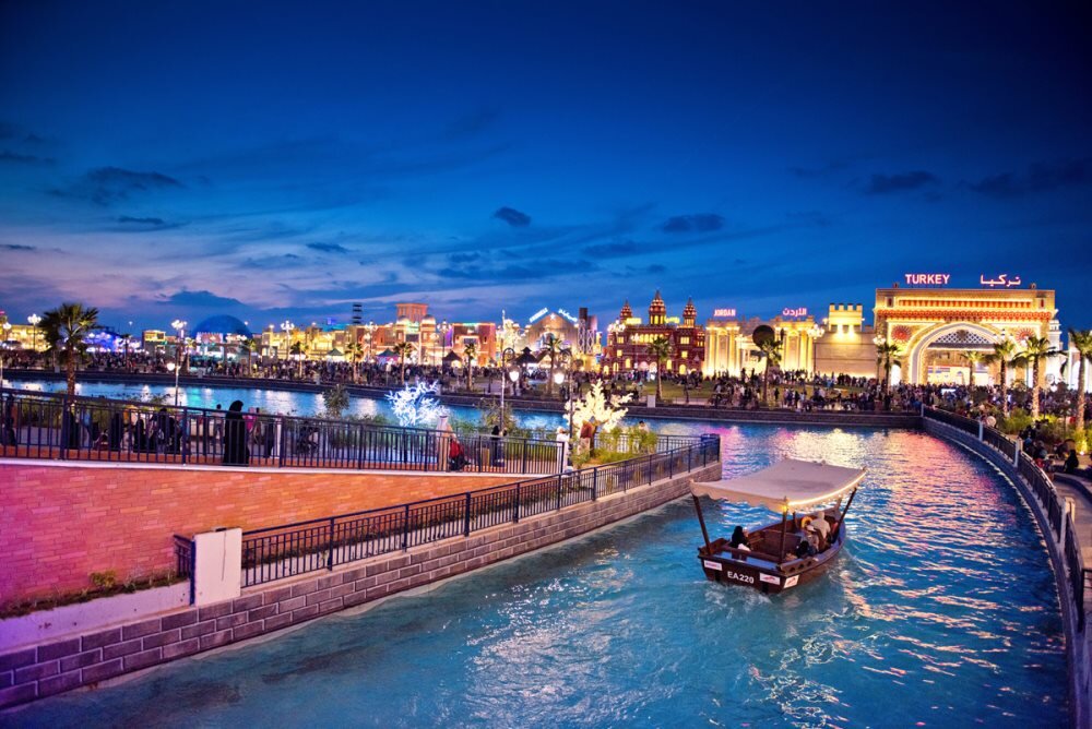 Global Village Dubai – огромный тематический семейный парковый комплекс, расположенный в Дубае, Объединенные Арабские Эмираты. Идея парка состояла в том, чтобы показать все достопримечательности каждой из стран мира. Для этого комплекс был разделен на отдельные участки, отведенные под каждую отдельную страну. В Global Village Dubai можно обнаружить множество различных фуд-кортов, инсталляций, рынков и аттракционов. Осмотреть все просторы комплекса с высоты позволяет огромное колесо обозрения, расположенное на территории парка Global Village Dubai стал настоящей достопримечательностью Дубая, так как на его территории расположилось множество грандиозных павильонов, посвященных различным странам мира. Каждый из них имеет собственную архитектуру, уникальные инсталляции, магазины и кафе. Зачастую весь персонал павильонов одет в национальную одежду конкретной страны, которой посвящена выставка. То же самое касается магазинов, ресторанов и представленных экспонатов. Только в этом месте можно