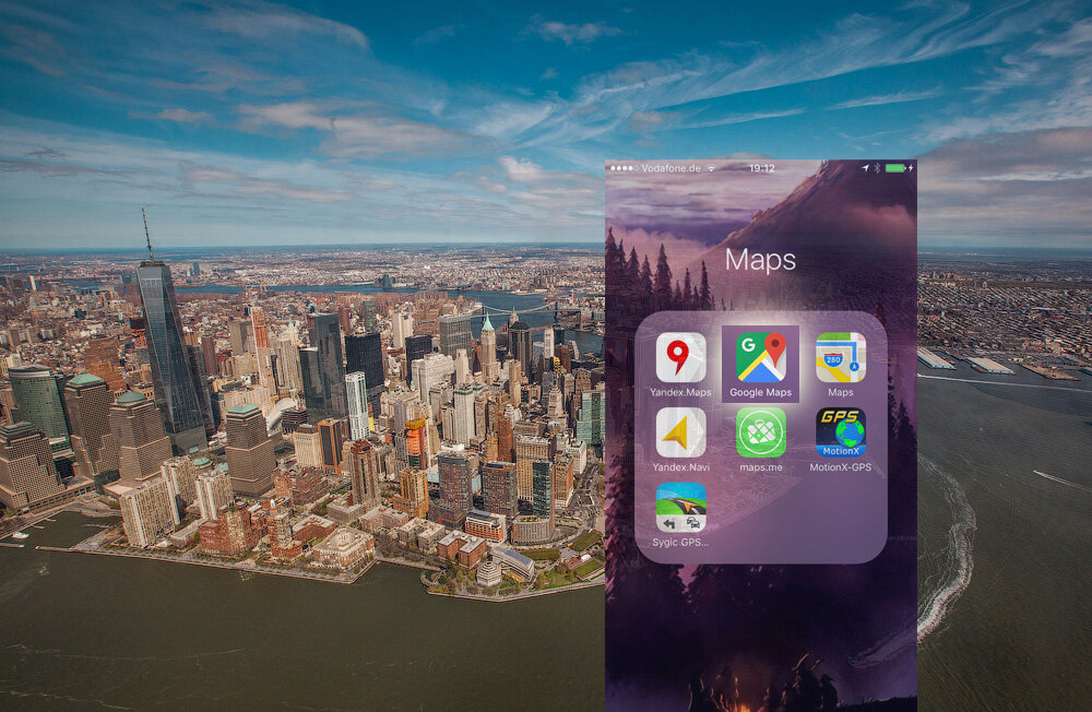 Все мои картографические приложения объединены в одну папку Maps на первом экране.